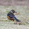 大噪鹛:中型鸟类,体长32-36厘米。额至头顶黑褐色,背栗褐色满杂以白色斑点,斑点前缘或四周还围有黑色。初级覆羽、大覆羽和初级飞羽具白色端斑。尾特长,均具黑色亚端斑和白色端斑。颏、喉棕褐色,…全部>>