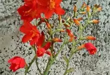 雄黄兰是鸢尾科雄黄兰属多年生草本植物。雄黄兰具扁球径,叶多基生,剑形;花茎由多花给成疏散的穗状花序,花冠漏斗状,深橙红色;蒴果。 花期7-8月,果期8-10月 。雄黄兰因橘红色的花与雄黄颜色相似而得名。…全部>>
