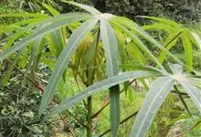 木薯,为大戟科木薯属的一种直立灌木,又名木番薯、树薯。木薯高1.5-3米;块根圆柱状。叶纸质,轮廓近圆形;裂片倒披针形至狭椭圆形;托叶三角状披针形。圆锥花序顶生或腋生,花萼带紫红色且有白粉霜。…全部>>