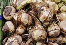 慈姑 Makino )泽泻科多年生草本植物,生在水田里,叶子像箭头,开白花。地下有球茎,黄白色或青白色,以球茎作蔬菜食用。可以吃。也作茨菰。本变种与原变种不同在于:植株高大,粗壮;叶片宽大,肥厚,顶…全部>>