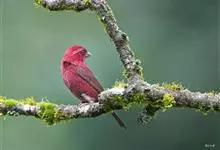 酒红朱雀小型鸟类,体长13~15厘米。雄鸟通体深红色,头部深朱红或棕红色,下背和腰玫瑰红色,眉纹粉红色而具丝绢光泽。两翅和尾黑褐或灰褐色、具暗红色狭缘,内侧两枚三级飞羽具淡粉红色先端。…全部>>