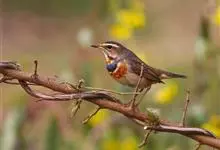 蓝点颏亦称“蓝喉歌鸲”,通称蓝靛颏儿。身体大小和麻雀相似,体长12-13厘米,体重17-18克。头部、上体主要为土褐色。眉纹白色。尾羽黑褐色,基部栗红色。颏部、喉部辉蓝色,下面有黑色横纹。下体白色。…全部>>