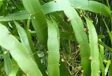 竹节蓼 Meisn.)是蓼科千叶兰属常绿灌木。株高可达1-3米;老枝圆柱形,暗褐色,幼茎扁平,亮绿色,形似叶片,有节及纵沟;叶退化,幼年有少量披针形叶片,端渐尖,基部楔形,全缘或近基部有锯齿,…全部>>
