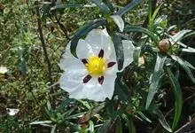 岩蔷薇是半日花科岩蔷薇属植物,多年生直立亚灌木,高约1.5-2.5米,全体具胶黏腺体。枝条褐色,侧枝分为生长枝和结果枝。单叶对生,披针形至线状披针形,长5-8厘米,宽0.5-1.5厘米。…全部>>