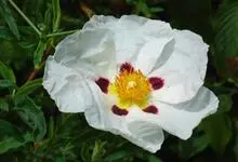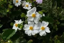岩蔷薇是半日花科岩蔷薇属植物,多年生直立亚灌木,高约1.5-2.5米,全体具胶黏腺体。枝条褐色,侧枝分为生长枝和结果枝。单叶对生,披针形至线状披针形,长5-8厘米,宽0.5-1.5厘米。…全部>>