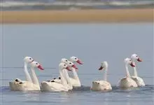 扁嘴天鹅:体长90-115厘米,体羽白色,羽端黑色,在飞行时则很明显。雁喙和脚红色。栖息于茂密的沼泽及湖泊,主要吃草及水生植物,也会吃蚌类及鱼类。分布于南美洲,…全部>>