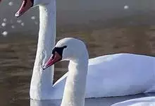 疣鼻天鹅:是鸟纲、鸭科、天鹅属的一种大型的游禽,体长1.2-1.5米,体重6.75-10千克。脖颈细长,前额有一块瘤疣的突起,因此得名。全身羽毛洁白。在水中游泳时,颈部弯曲而略似“S“形。…全部>>