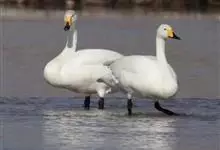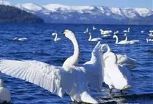 小天鹅为大型水禽,体长110~130厘米,体重4~7千克,雌鸟略小。它与大天鹅在体形上非常相似,同样是长长的脖颈,纯白的羽毛,黑色的脚和蹼,身体也只是稍稍小一些,颈部和嘴比大天鹅略短,但很难分辩。最…全部>>