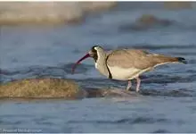 鹮嘴鹬体长40厘米,是一种灰、黑及白色鹬。识别特征为腿及嘴红色,嘴长且下弯。一道黑白色的横带将灰色的上胸与其白色的下部隔开。翼下白色,翼上中心具大片白色斑。幼鸟上体具皮黄色鳞状纹,黑色斑纹不甚清楚,…全部>>