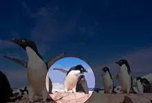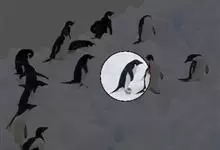 阿德利企鹅在企鹅家族中属中、小型种类,体长72-76厘米,和许多种类企鹅一样,雌鸟和雄鸟同形同色,从外形难以辨认。眼圈为白色,头部呈蓝绿色,嘴为黑色,嘴角有细长羽毛。羽毛由黑、白两色组成,…全部>>