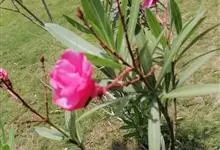 夹竹桃,又名红花夹竹桃、欧洲夹竹桃,是夹竹桃科夹竹桃属的一种常绿直立大灌木,枝条灰绿色,含水液。叶披针形,3叶轮生。聚伞花序顶生,花冠粉红至深红色,花冠漏斗状,有特殊香味。蓇葖果,圆柱形。种子长圆形,…全部>>