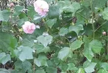 木芙蓉,锦葵科木槿属落叶灌木或小乔木。小枝上有细绒毛;叶片为卵状心形,托叶为披针形,常早落;花单生,花萼为钟形,花冠初为白色或淡红色,后逐渐变为深红色;果实为扁球形,有淡黄色的毛附着。花期8到10月。…全部>>