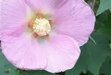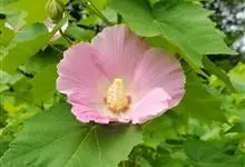 海滨木槿是锦葵科木槿属植物,落叶小乔木,株高3-5米,胸径20厘米,扁球形树冠,枝叶繁盛。厚纸质单叶互生,扁圆形、倒卵形或宽倒卵形,先端钝近平,具短突尖,基部圆形或浅心形,叶缘中上部具细圆齿,…全部>>
