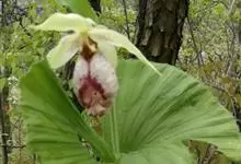扇脉杓兰:植株高35-55厘米,具较细长的、横走的根状茎;茎直立,被褐色长柔毛,基部具数枚鞘,顶端生叶。叶通常2枚,近对生,位于植株近中部处,叶片扇形。花序顶生,具1花;花俯垂;萼片和花瓣淡黄绿色,…全部>>