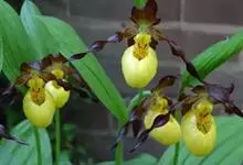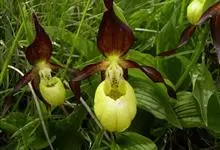 斑叶杓兰:植株高约10厘米,地下具较粗壮而短的根状茎。茎直立,较短,顶端具2枚叶。叶近对生,铺地;叶片宽卵形至近圆形,上面暗绿色并有黑紫色斑点。花序顶生,具1花;花较美丽,萼片绿黄色有栗色纵条纹,…全部>>