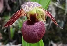 大花杓兰因其形状酷似一个口小肚大的囊袋,又名“大口袋兰”。花体呈紫红色,花朵直径5厘米至6厘米,是中国野生兰花中观赏价值较高的一种,此花有栽培,具有较高的园艺价值。…全部>>