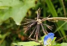 鸭跖草,是鸭跖草科鸭跖草属的—年生披散草本植物。鸭跖草的茎匍匐生根,多分枝;叶披针形或卵状披针形;萼片膜质,花瓣深蓝色;蒴果椭圆形;种子棕黄色,一端平截,腹面平,有不规则窝孔;花期7-9月,…全部>>