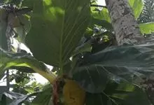 面包树 Fosberg)是桑科波罗蜜属植物。叶大,成熟之叶羽状分裂,表面深绿色,背面浅绿色;穗状花序单生叶腋,雄花序长圆筒形至长椭圆形或棒状;聚花果倒卵圆形或近球形;花期为3~5月,果期为7~10月。…全部>>