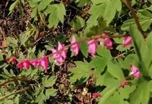 荷包牡丹 Fukuhara),是罂粟科荷包牡丹属的多年生草本植物,株高30-60厘米,具肉质根状茎;茎直立呈圆柱形;叶二回三出全裂,状似牡丹叶;总状花序顶生,基部为心形,花瓣紫红色至粉红色,稀白色,…全部>>