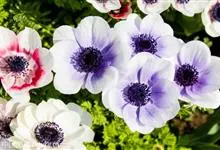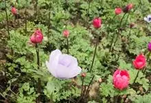 欧洲银莲花:是毛茛科、银莲花属的多年生草本植物。株高25-65厘米,具根状茎。叶为根出叶,3裂,成掌状深裂,具长柄。花茎自叶丛中抽出,花单生与茎顶,花色有白、红、粉、蓝紫色及复色等,花直径4-10厘…全部>>