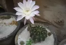 仙人球花 仙人掌科,仙人球属。植株单生或成丛。幼株球形,老株长成圆筒状,高可达75厘米,直径12-15厘米。球体暗绿色,具棱11-12。刺锥状,黑色,长1-1.5厘米。花着生于球体侧方,大型嗽喇叭状…全部>>