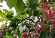 使君子 Jongkind)是使君子科、使君子属攀援灌木,叶对生,椭圆形,两面均被灰白色柔毛。穗状花序,倒挂下垂。花期夏秋。果有五棱,熟时黑色,种子白色。分布于印度、缅甸、菲律宾和中国。喜温润,深根性,…全部>>