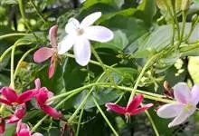 使君子 Jongkind)是使君子科、使君子属攀援灌木,叶对生,椭圆形,两面均被灰白色柔毛。穗状花序,倒挂下垂。花期夏秋。果有五棱,熟时黑色,种子白色。分布于印度、缅甸、菲律宾和中国。喜温润,深根性,…全部>>