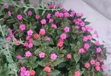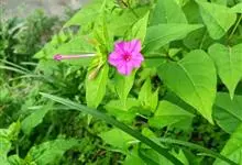 即紫茉莉,英文名:Four-o'clock,Marvel of Peru,为紫茉莉科、紫茉莉属多年生草本植物,一年生栽培。株高50~80cm。根粗壮,茎多分枝而散生。叶对生,卵形或心脏形。花数朵簇生…全部>>