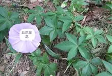 五爪金龙 Sweet),旋花科番薯属多年生缠绕草本植物。茎细长,有细棱;叶片为掌状;花冠紫红色、紫色或淡红色、偶有白色,漏斗状;蒴果近球形。花期5~12月。五爪金龙的叶子类似掌状,有5至7个裂痕,…全部>>