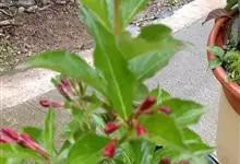 红王子锦带花是忍冬科锦带花属的落叶开张性灌木。株高1 -2米;嫩枝淡红色,老枝灰褐色;单叶对生,呈椭圆形,先端渐尖,叶缘有锯齿,红枝及叶脉具柔毛;花冠漏斗状钟形,花冠筒中部以下变细,聚伞花序,…全部>>