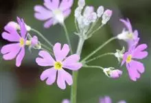 报春花是报春花科报春花属多年生草本植物。叶片在茎基部丛生,有多个浅裂,裂片叶缘呈不整齐锯齿状;花梗上有多轮伞状花序,每轮花序由多朵小花组成,粉红色、淡蓝紫色、或近白色;蒴果球形。花期2-5月,…全部>>