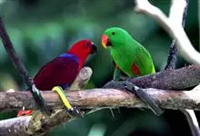 折衷鹦鹉是鹦形目鹦鹉科折衷鹦鹉属鸟类,又称大紫红鹦鹉、红胁绿鹦鹉、华贵折衷鹦鹉。短尾,雄性全身绿色,翅缘及初级飞羽蓝色,胁及翅膀内侧红色;上喙橙黄色,下啄黑色;尾覆羽绿色,尾羽内侧黑色具黄色端斑。…全部>>