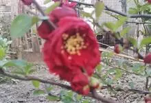 贴梗海棠Nakai)是蔷薇科、木瓜海棠属植物。落叶灌木,高达2米,枝条直立开展,有刺。叶片卵形至椭圆形,稀长椭圆形,长3-9厘米,宽1.5-5厘米。花先叶开放,3-5朵簇生于二年生老枝上。…全部>>