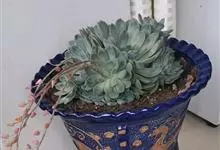 蓝石莲是景天科、拟石莲花属的多肉植物。茎部粗壮,成熟植株茎部木质化。叶片莲座型密集排列,株径不会很大,叶片相对较薄,常年绿色,表面布有白色粉末,中部凹陷,呈倒水滴状。叶尖较尖,叶缘光滑无褶皱,…全部>>