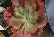 女王花笠,又名扇贝石莲花、女王花舞笠,是景天科拟石莲花属的多肉植物。由美国加利福尼亚州的育种师Dick Wright于1964年培育。特征是呈大波浪状褶皱的红色叶缘和气质高贵的粉紫色调。…全部>>