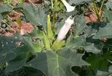 曼陀罗,茄科曼陀罗属一年生大型草本植物,全株光滑。有臭气;叶呈广卯形,边缘具不规则波状浅齿裂;花单生于枝杖间或叶腋,直立,有短梗;花萼是筒状裂片三角形,颜色为白色或淡紫色;果实为蒴果卵状,…全部>>