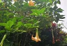 洋金花是茄科曼陀罗属植物,一年生草本植物,全株近于无毛。茎直立,圆柱形,高30~100cm,基部木质化,上部呈义状分枝。叶互生,上部的叶近于对生;叶柄长2~6cm,表面被疏短毛;叶片卵形、长卵形或心形,…全部>>
