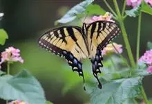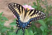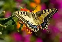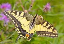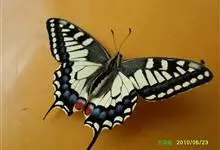 金凤蝶,是鳞翅目凤蝶科凤蝶属动物。金凤蝶为中型凤蝶,翅展70-84毫米,翅背面底色黑褐色,翅脉黑色,翅室具黄斑;前翅背面基部呈暗黄色,亚外缘为黑色,内具一列小黄斑;后翅背面亚外缘区具黑宽边,…全部>>