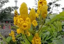 翅荚决明 Roxb.)是豆科决明属灌木植物,高3米。羽状复叶,在叶柄和叶轴上有窄翅;小叶倒卵状长圆形,先端圆钝,基部斜截形;总状花序顶生和腋生;荚果带形,…全部>>