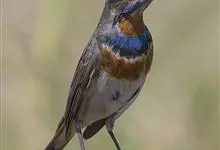 蓝点颏亦称“蓝喉歌鸲”,通称蓝靛颏儿。身体大小和麻雀相似,体长12-13厘米,体重17-18克。头部、上体主要为土褐色。眉纹白色。尾羽黑褐色,基部栗红色。颏部、喉部辉蓝色,下面有黑色横纹。下体白色。…全部>>