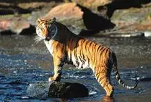 印度支那虎:简称印支虎。是老虎的一个亚种。雄性平均体重185千克,体长2.7米。与孟加拉虎相比,它们的体形较小,毛色更深,身上的条纹更短、更窄;而胃部、咽喉和两颊有较大的白色斑痕。…全部>>