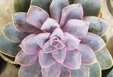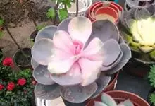 紫珍珠是景天科石莲花属的多年生肉质草本植物。植株中小型;叶片肉质,匙形,呈莲座状紧密排列;叶片粉紫色,叶缘呈粉白色,光照充足时颜色亮丽,不足时叶色会呈现深绿色或灰绿色,叶面光滑,被轻微白粉,…全部>>