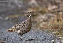 红腹角雉属于鸡形目雉科,雄鸟体羽及两翅主要为深栗红色,满布具黑缘的灰色眼状斑,下体灰斑大而色浅。雌鸟上体灰褐色,下体淡黄色,杂以黑、棕、白斑。全部>>