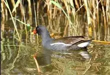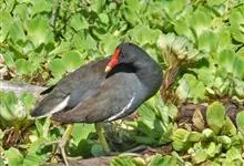 黑水鸡:是鹤形目、秧鸡科的鸟类,共有12个亚种。中型涉禽,体长24-35厘米。嘴长度适中,鼻孔狭长;头具额甲,后缘圆钝;嘴和额甲色彩鲜艳。翅圆形,第2枚初级飞羽最长,或第2枚和第3枚初级飞羽等长,…全部>>