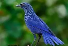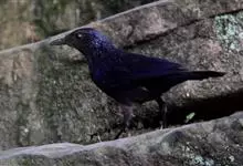 紫啸鸫是雀形目鹟科啸鸫属鸟类,又称黑雀儿,山鸣鸡、乌精。成鸟眼先及颏绒黑色;前额、头顶至背及肩羽和颈侧呈深紫蓝色,羽端具较密集的亮蓝色点斑;腰至尾上覆羽的深紫蓝色较暗而杂黑褐色,…全部>>