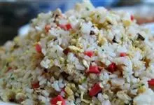 扬州炒饭又名扬州蛋炒饭,是江苏省扬州市的一道传统名菜,属于淮扬菜,其主要食材有米饭、火腿、鸡蛋、虾仁等。扬州炒饭选料严谨、制作精细、加工讲究,而且注重配色。炒制完成后,…全部>>