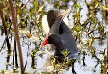 黑水鸡:是鹤形目、秧鸡科的鸟类,共有12个亚种。中型涉禽,体长24-35厘米。嘴长度适中,鼻孔狭长;头具额甲,后缘圆钝;嘴和额甲色彩鲜艳。翅圆形,第2枚初级飞羽最长,或第2枚和第3枚初级飞羽等长,…全部>>