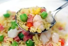 什锦炒饭是一道色香味俱全的名点,以江苏扬州的炒饭最知名。虾仁去泥肠洗净,加料酒、胡椒粉、淀粉上浆。胡萝卜洗净,切小片。蘑菇洗净、切块。将虾仁、豌豆粒、蘑菇倒入沸水锅中,焯烫至断生,捞出沥水。…全部>>