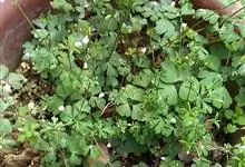 天葵 Makino)是毛茛科天葵属多年生小草本植物,块根长达2厘米,外皮棕黑色。茎高可达32厘米,基生叶为掌状三出复叶;叶片轮廓卵圆形至肾形,小叶扇状菱形或倒卵状菱形,两面均无毛;叶柄长可达12厘米,…全部>>
