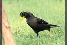 金冠树八哥为椋鸟科树八哥属的鸟类。体长约23厘米,闪辉黑色。特征为具翼斑及颏黄色,脸颊裸露皮肤粉黄色。分布于印度、缅甸、泰国以及中国大陆的云南、广东等地。…全部>>